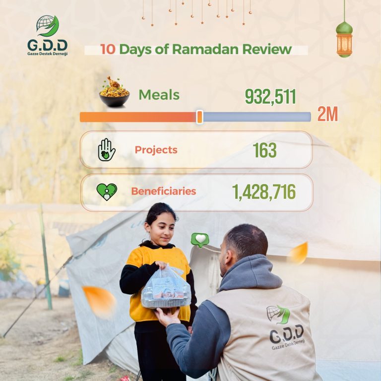 The Gazze Destek team has begun distributing daily Iftar meals to displaced families.